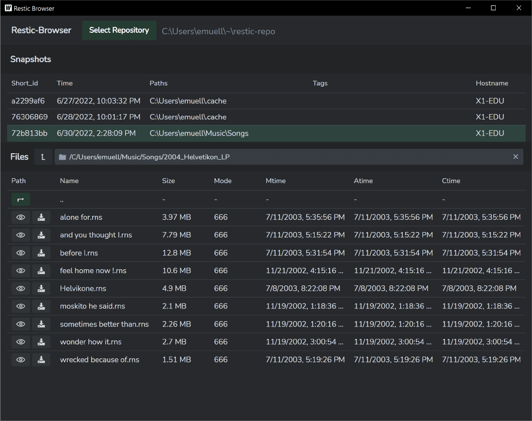 CommunityShowcaseRestic BrowserVersion: v2.0.0-rc.1Restic BrowserRestic-Browser - A simple, cross-platform restic backup GUI for browsing and restoring restic repositories.
