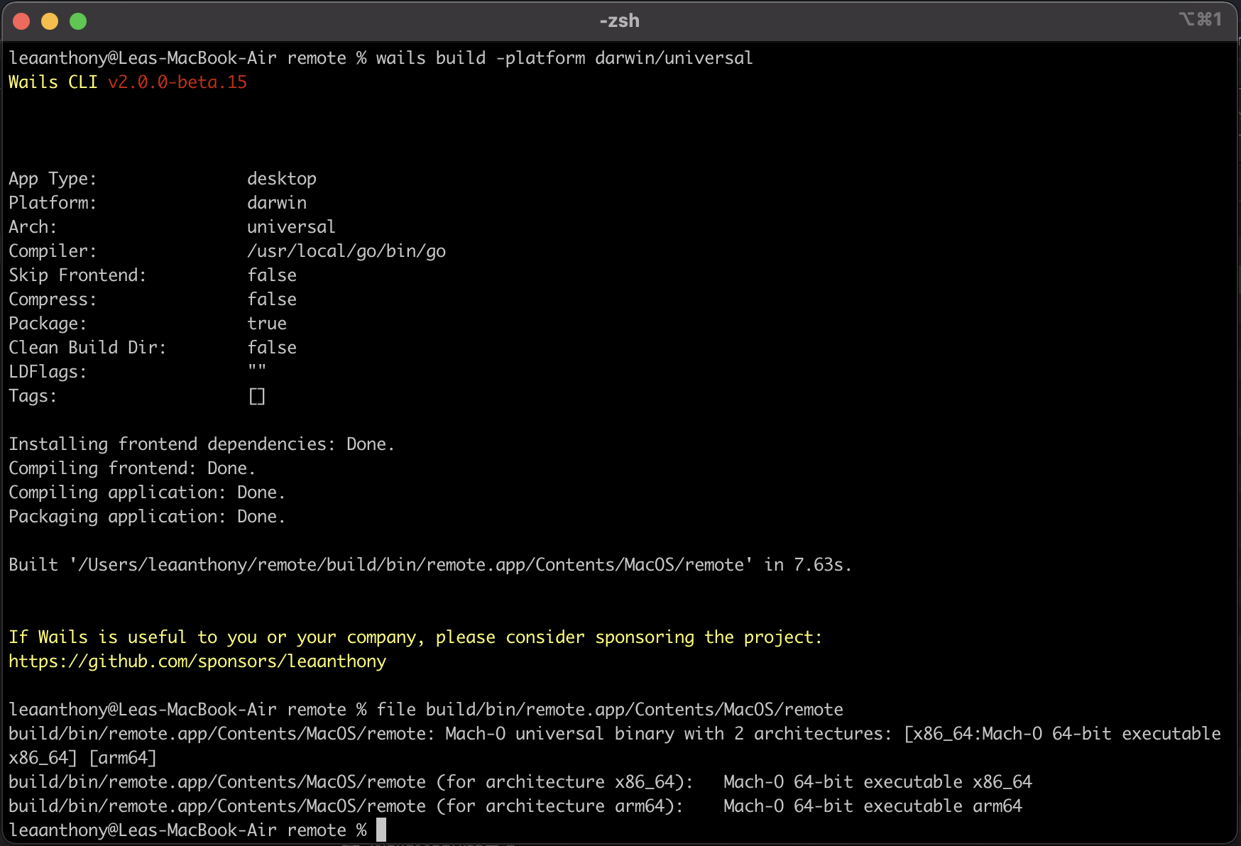 PS: If you or your company find Wails useful, please consider sponsoring the project. Thanks!